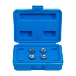 - Der Lieferumfang umfasst folgende Einzeilteile: 1x Sechskant SW 8 mm, 1x Sechskant SW 10 mm, 1x Vierkant SW 8 mm, 1x Elfkant. Das Set wird in einer praktischen Kunststoffbox geliefert.