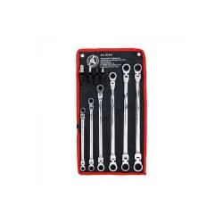 - Der Doppelratschen-Gelenkschlüssel-Satz ermöglicht das Lösen und Festziehen von Schraubverbindungen.