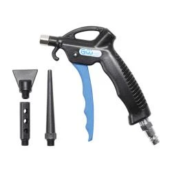 - Die Druckluft-Ausblaspistole wird inklusive drei zusätzlicher Aufsteckdüsen geliefert. Die Aufsteckdüsen ermöglichen einen Spotstrahl, Rundstrahl und Breitstrahl. Das Gehäuse der Pistole ist aus Nylon-Fiber gefertigt.