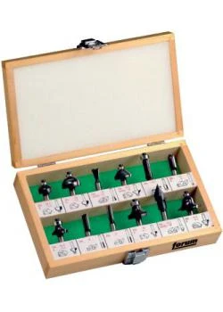 - Nutfräser 8 mm Ø, Nutfräser 12 mm Ø, Grat-/Zinkenfräser 14 mm Ø, 14°, V-Nutfräser 60°, Hohlkehlfräser R = 6 mm. Mit Anlaufkugellager je 1 Stück Hohlkehlfräser R = 6,3 mm, Hohlkehlfräser R = 9,5 mm, Fasefräser 45°, Abrundfräser R = 6,3 mm, Abrundfräser R = 9,5 mm, Bündigfräser 12,7 mm Ø, Profilfräser 34,9 mm Ø, R = 6,3 mm.