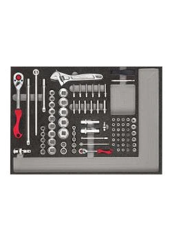 - Der Steckschlüssel-Satz sorgt für eine Basisausstattung und liefert für eine Vielzahl von Einsatzgebieten das passende Werkzeug.