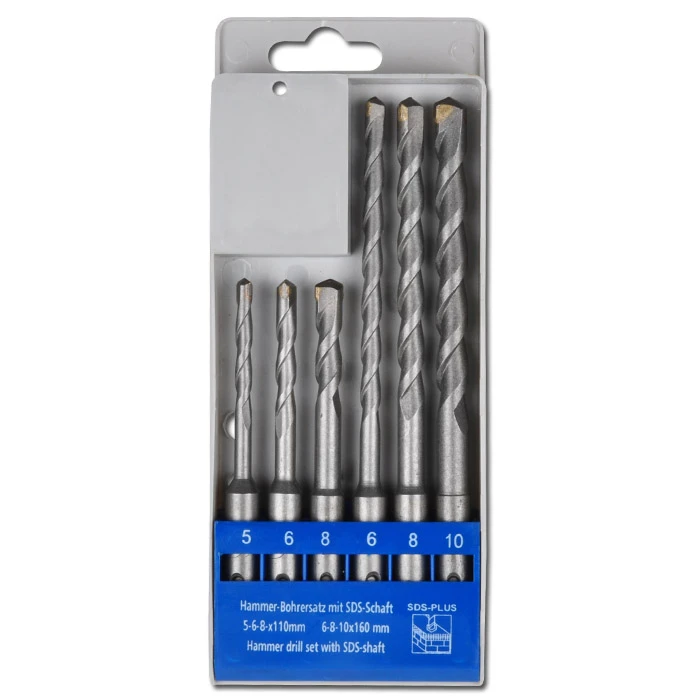 - Hammer-Bohrersatz mit SDS-Schaft – Hartmetallspitze – 6-teilig