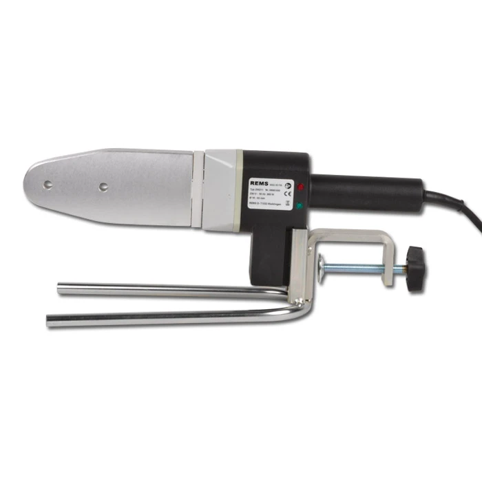- Heizelement-Muffenschweißgerät mit mechanischer Temperaturregelung (FM), Ablageständer, Halterung für Werkbank zur Befestigung des Gerätes in horizontaler oder vertikaler Position (nicht für MSG 25)