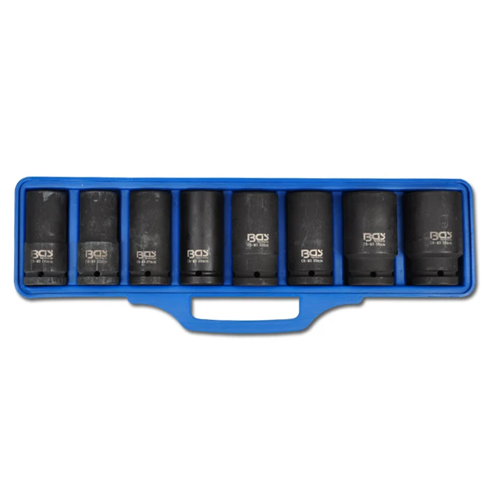 - Kraft-Steckschlüssel-Einsätze – 8-teilig – 22 bis 38 mm – 3/4″ – extra tief