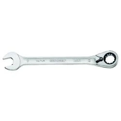 - umschaltbarer Maulschlüssel mit Ringratsche – Schlüsselweiten von 8 bis 24 mm und Rückschwenkwinkeln von 5° bis 6°