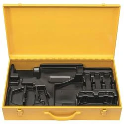 - Der REMS Stahlblechkasten mit Einlagen ermöglicht die Aufbewahrung und den Transport der REMS Akku-Press Radialpresse