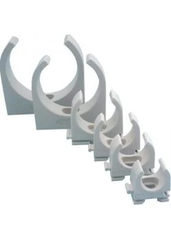 - Rohr-Klemmschellen für die Befestigung von Stahl-Panzerrohren nach DIN 49020 und Kunststoff-Stangenrohren nach DIN 49016 mit mittlerer, bzw. schwerer Druckbelastbarkeit.