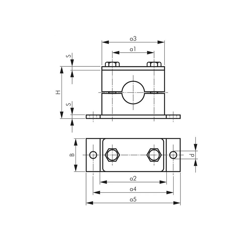 - Die Rohrschelle ist mit Anschweißplatte und Deckplatte ausgestattet.