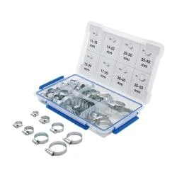 - Das Schlauchschellen-Sortiment wird im praktischen Sortimentskasten geliefert. Die Verpackung ist für den Wandbehang geeignet.