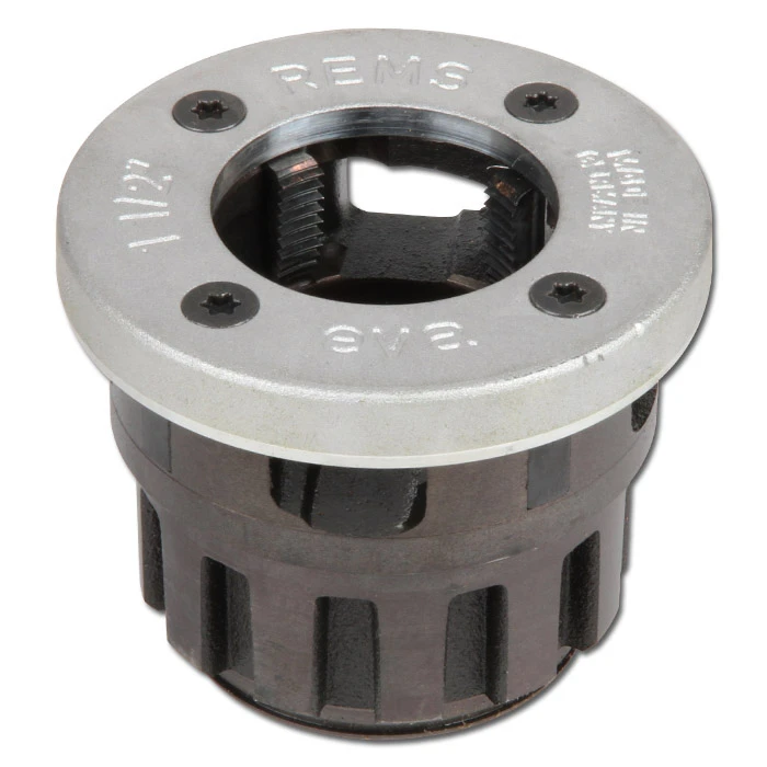- Schnellwechsel-Schneidgewinde mit Rohrgewinde kegelig rechts ISO 7-1, DIN EN s10226 (DIN 2999, BSPT) für einfaches Anschneiden und leiches Gewindeschneiden