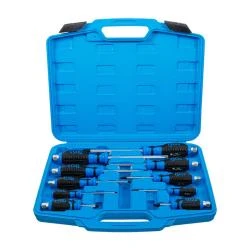 - 10teiliger Schraubendrehersatz mit Kreuzschlitz- und Schlitzprofil.