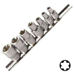 - Spezial-Steckschlüsseleinsätze für E-Profil – 7 teilig – 1/4″ und 3/8″
