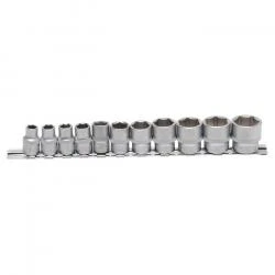 - die Steckschlüssel sind gerändelt für eine bessere Griffigkeit und auf einer Metallschiene zur besseren Lagerung