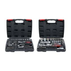 - Der Steckschlüsselsatz eignet sich zum Lösen und Festziehen verschiedener Schraubverbindungen und beinhaltet zwei Steckschlüsselsätze in separaten Koffern.