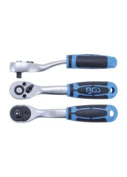 - Die Feinverzahnte Umschaltknarre in gekröpfter Ausführung ist umschaltbar, und verfügt über einen Einsatz-Schnelllöser.