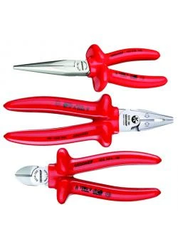 - der VDE-Zangen-Satz eignet sich zum Greifen, Halten und Schneiden von Drähten und Kabeln, insbesondere bei Elektroarbeiten und erneuerbare Energien