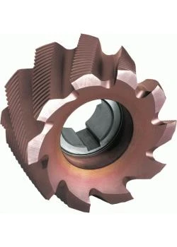 - Walzenstirnfräser „HSS Co8, TiCN, Typ HR“ geeignet zum Fräsen von Automaten-, Bau-, Einsatz- und Vergütungsstählen bis ca. 1400 N/mm² sowie für kurzspanende NE-Metalle