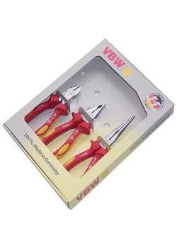 - Inhalt – VDE-Seitenschneider, VDE-Kombizange und VDE-Flachrund-Zange mit Brennerloch und Schneide